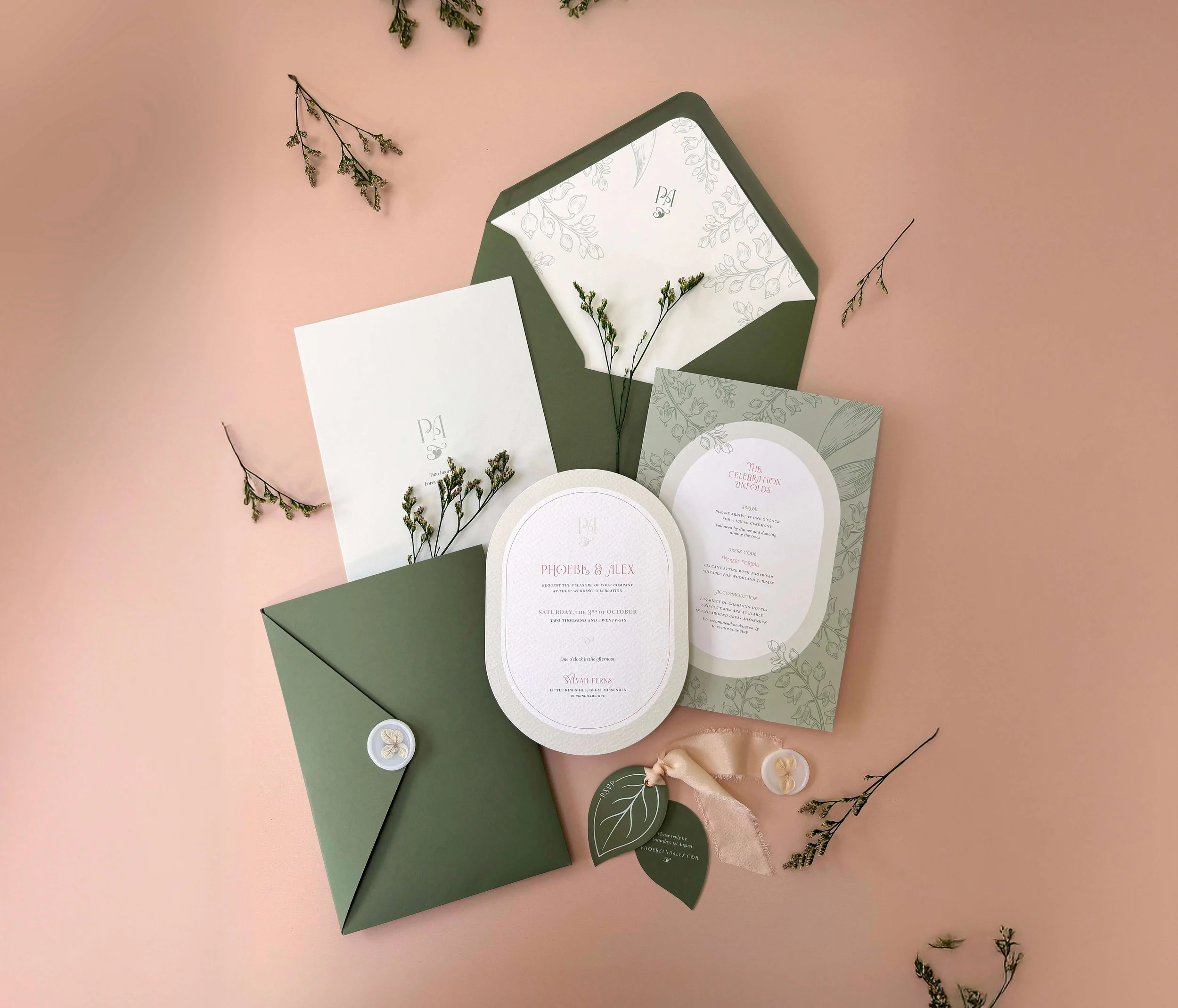 Inspired by botanical beauty, layered textures, and a love that’s evergreen.