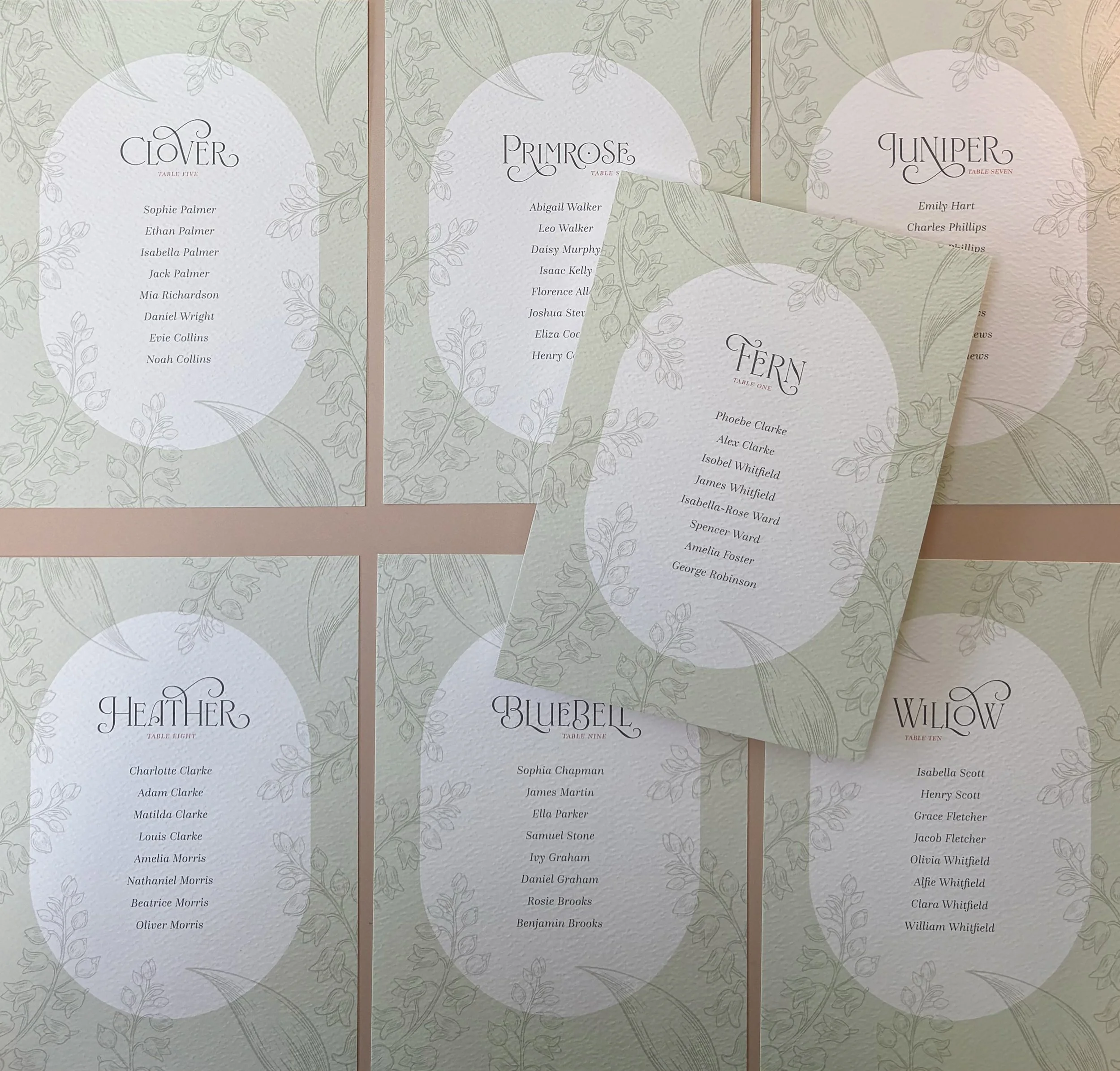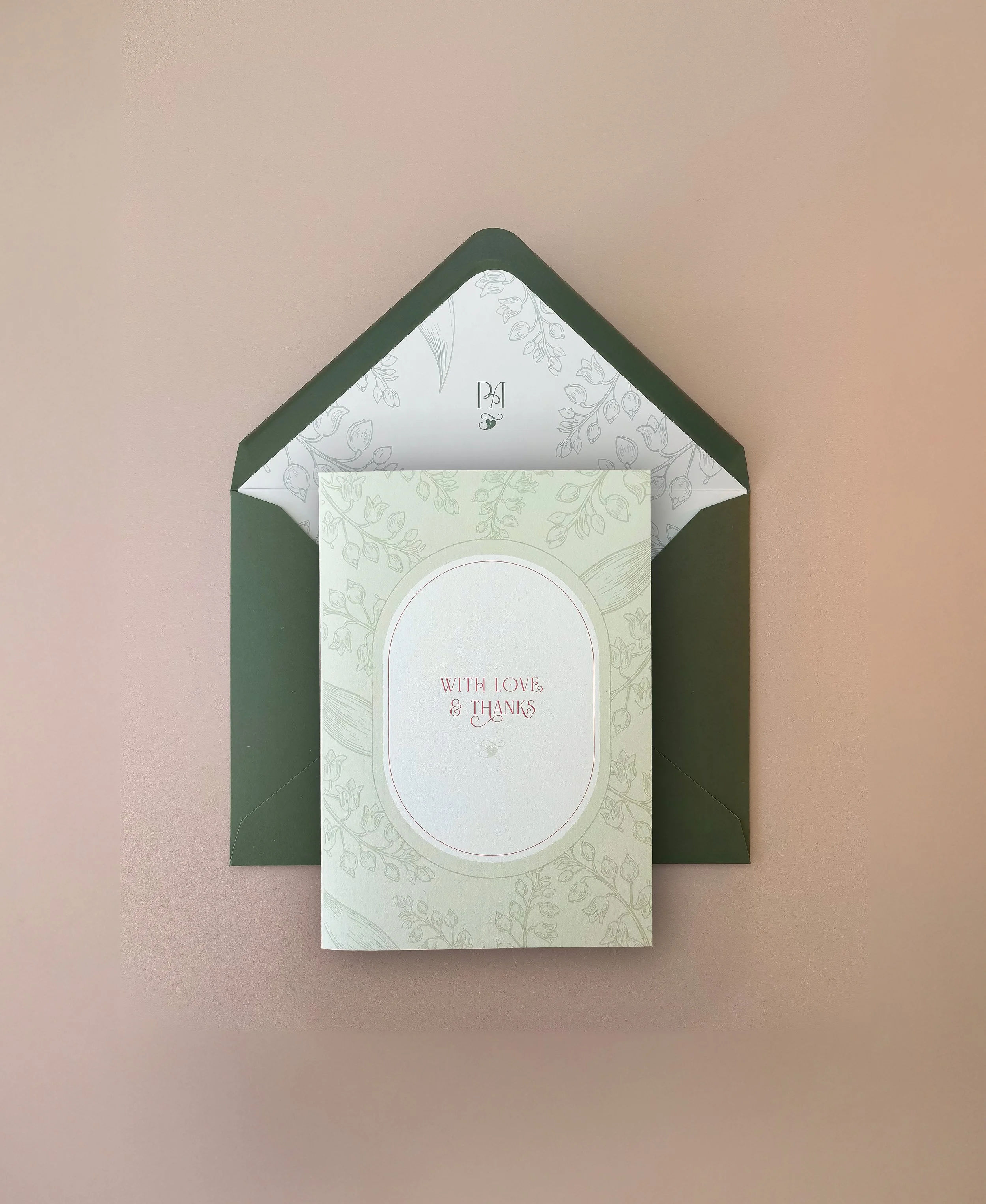A delicate Lily of the Valley illustration entwines the suite, adding depth and detail.