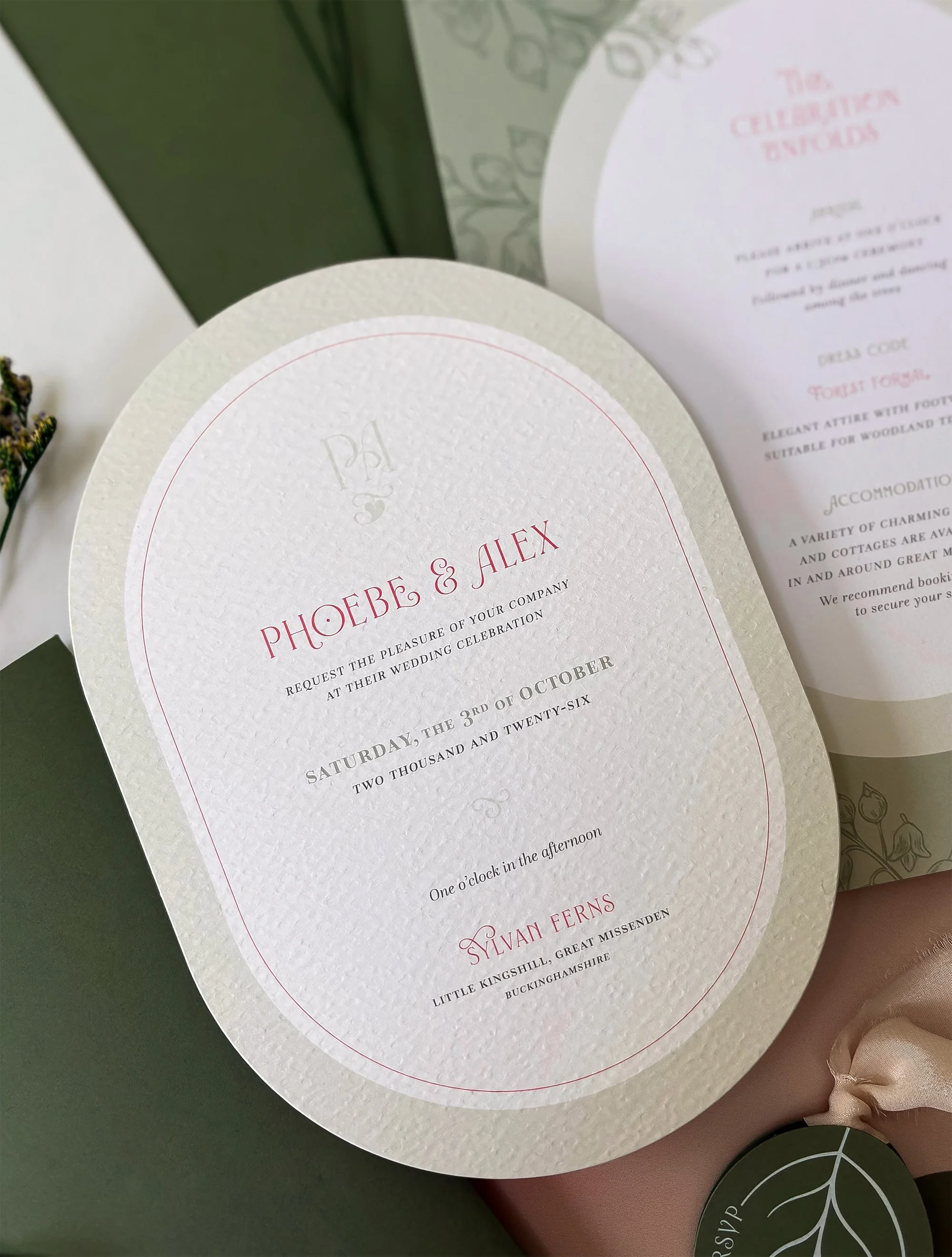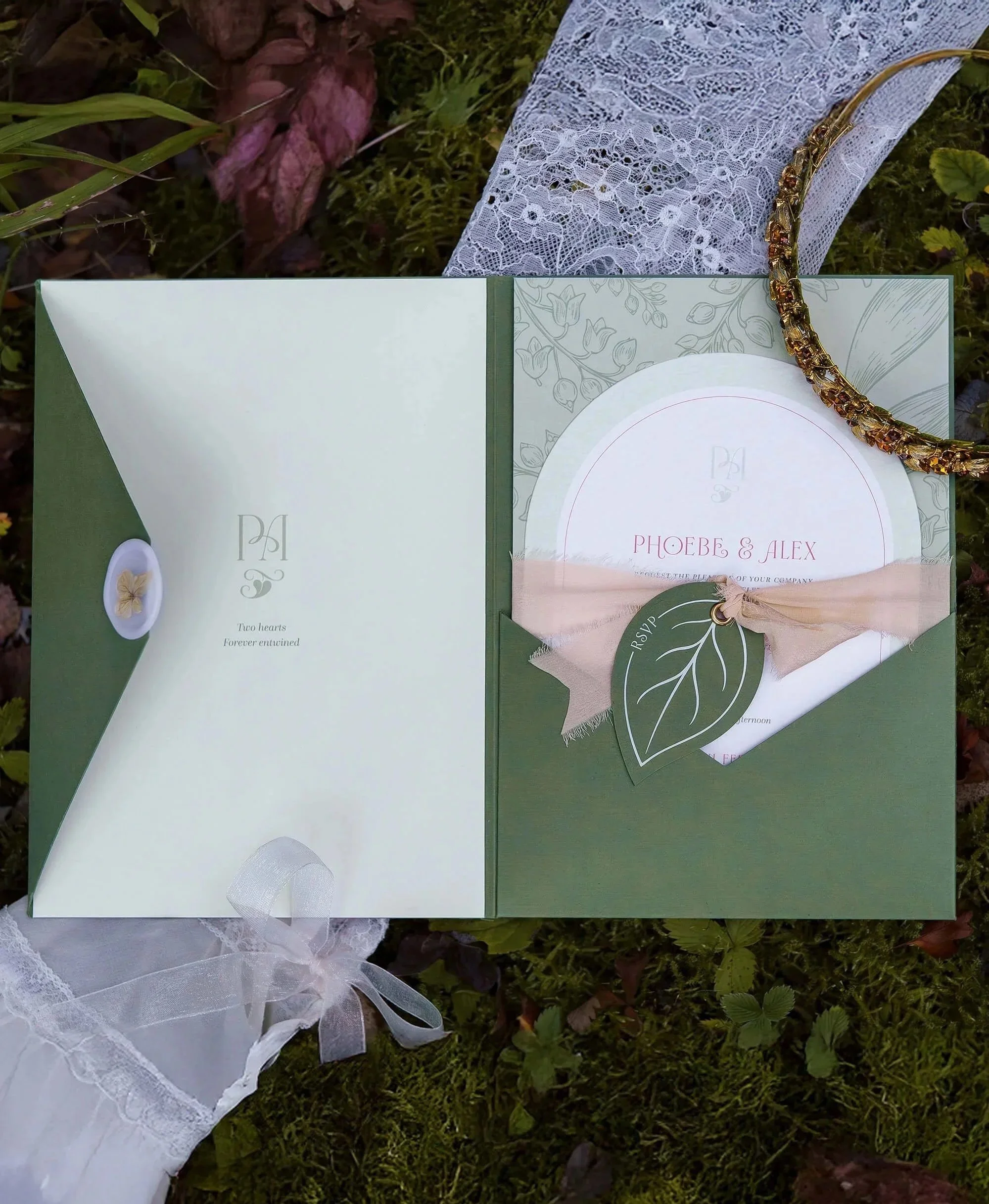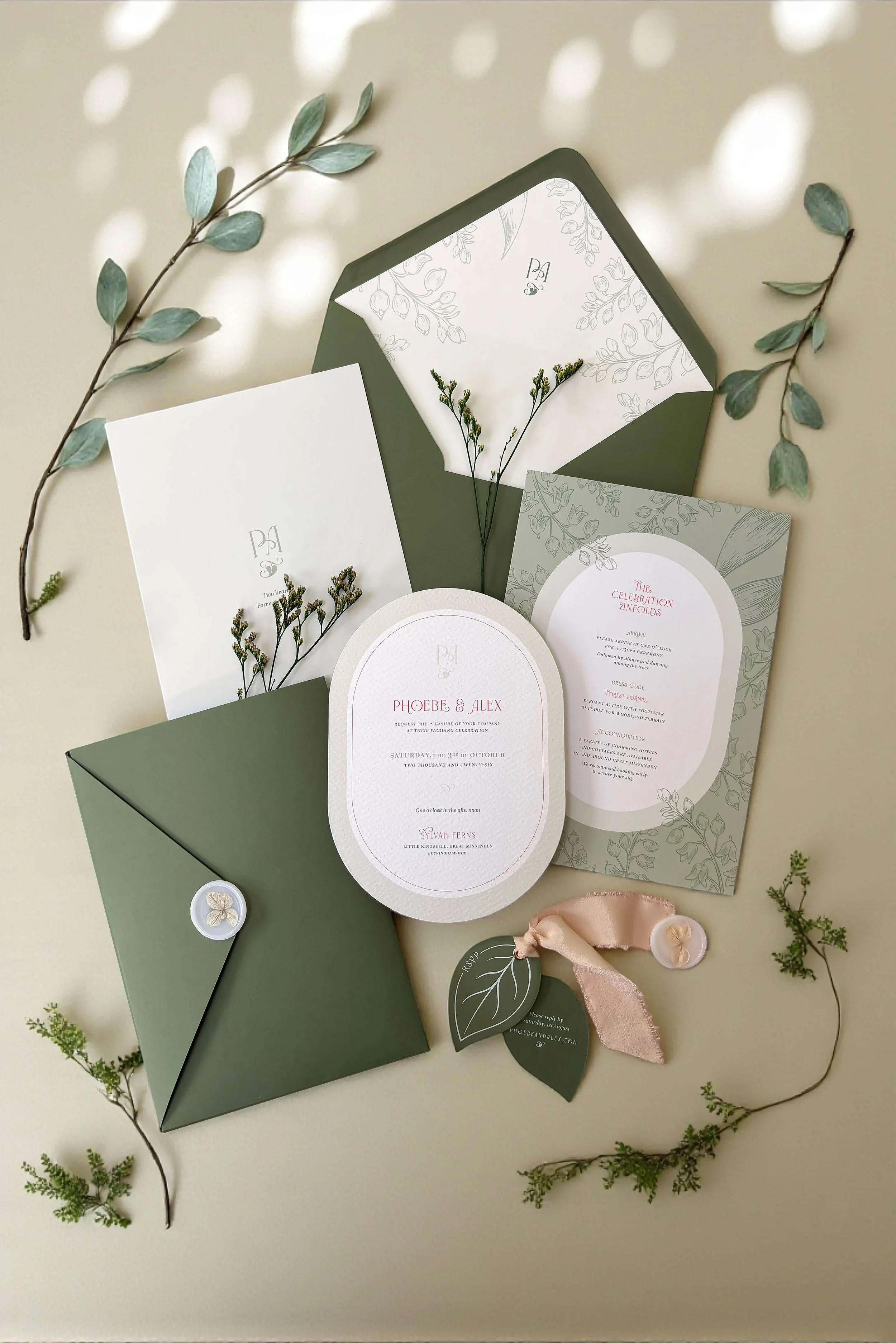An elegant layered invitation suite where every detail is crafted to reflect the grace of nature.