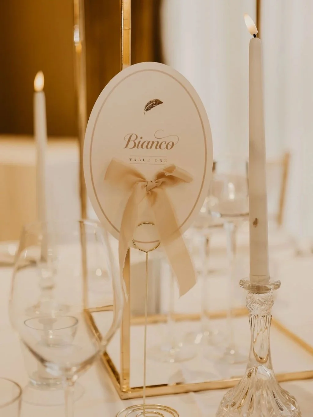 A bespoke motif, initials intertwined, a delicate emblem, a hand-drawn bee or constellation, adds a sense of identity and longevity. Something you can carry across your stationery, signage, wax seals… every aspect of your visual storytelling.