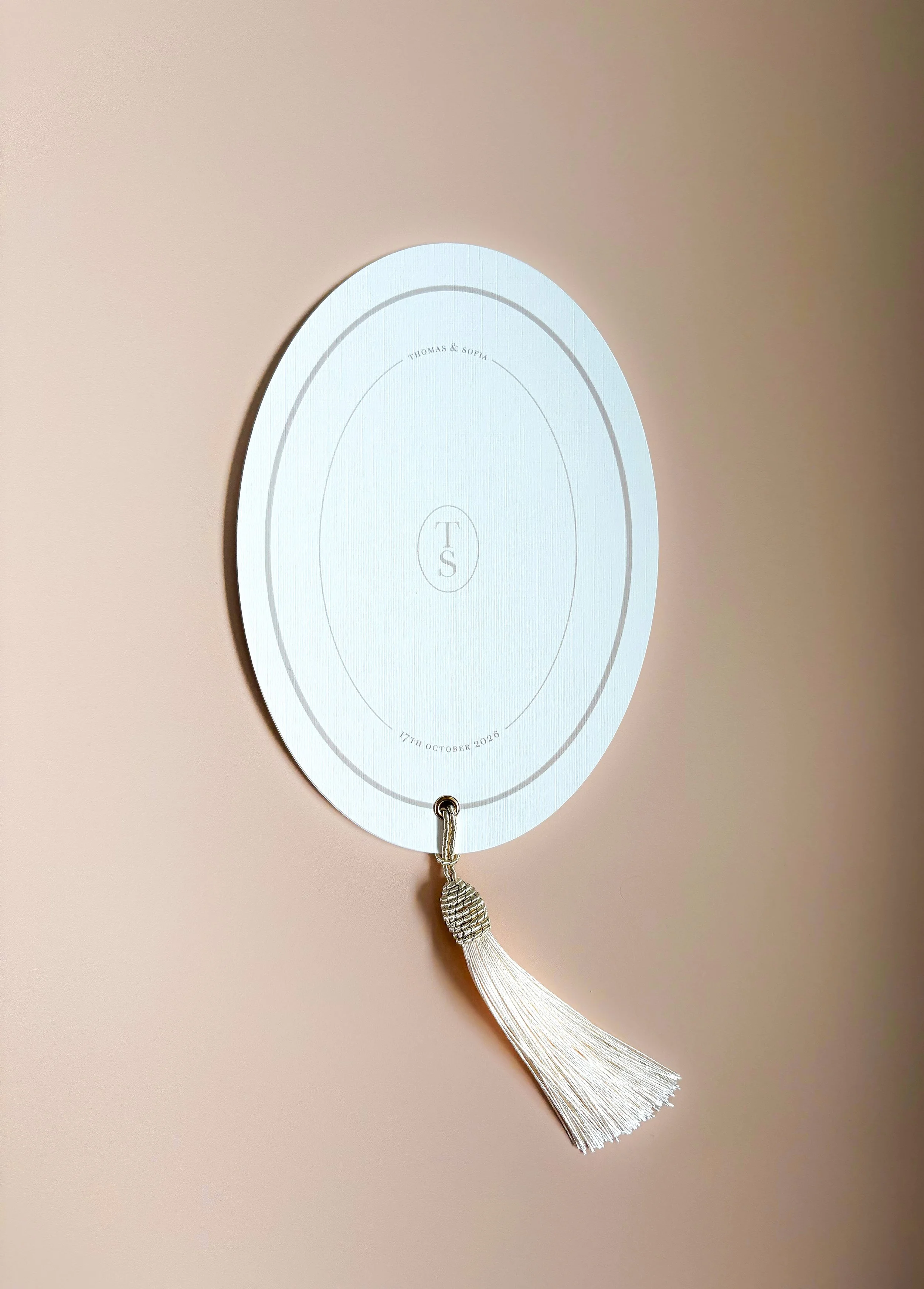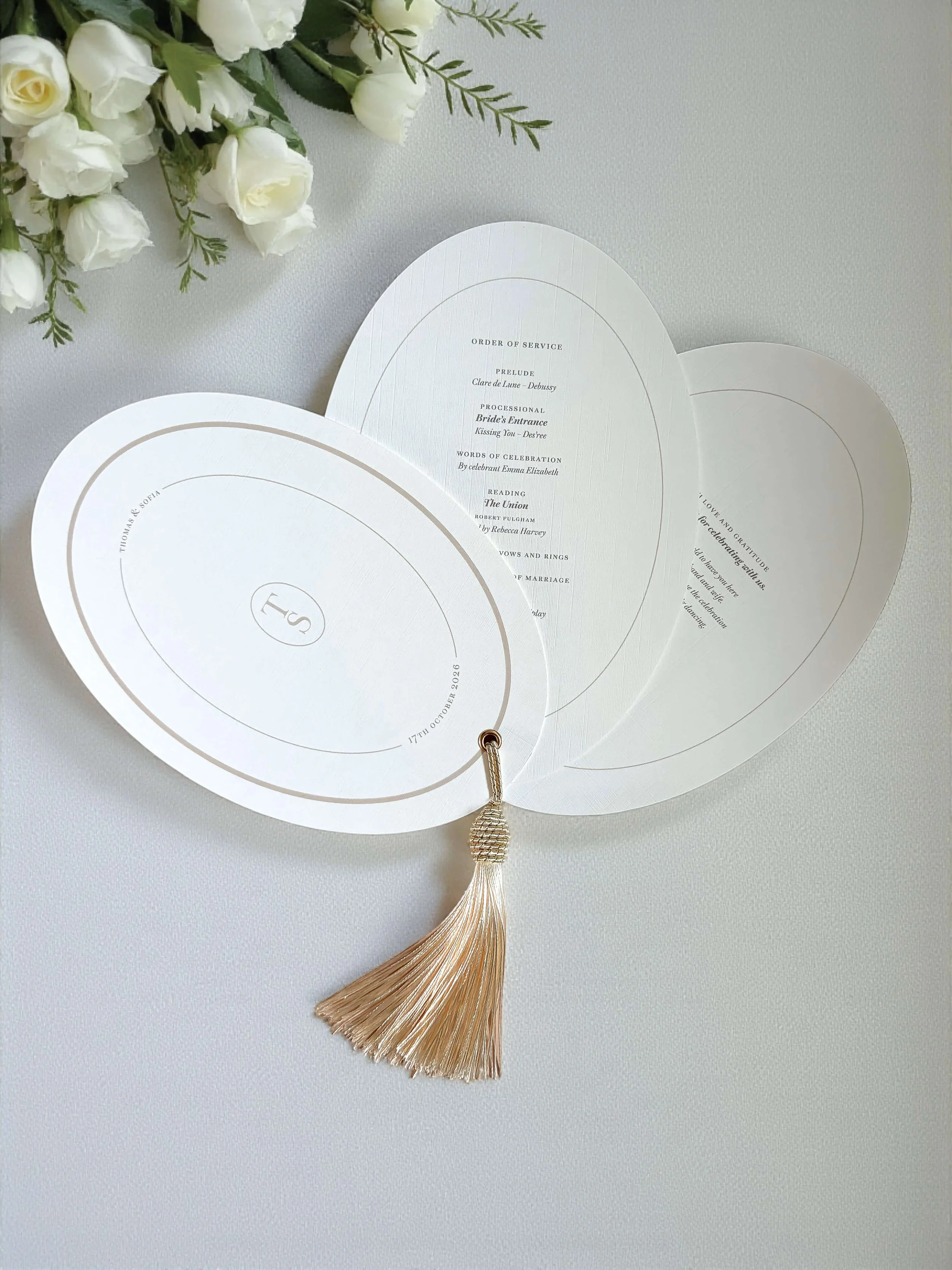 Each La Plume Order of Service features layered ovals bound with a silk tassel.