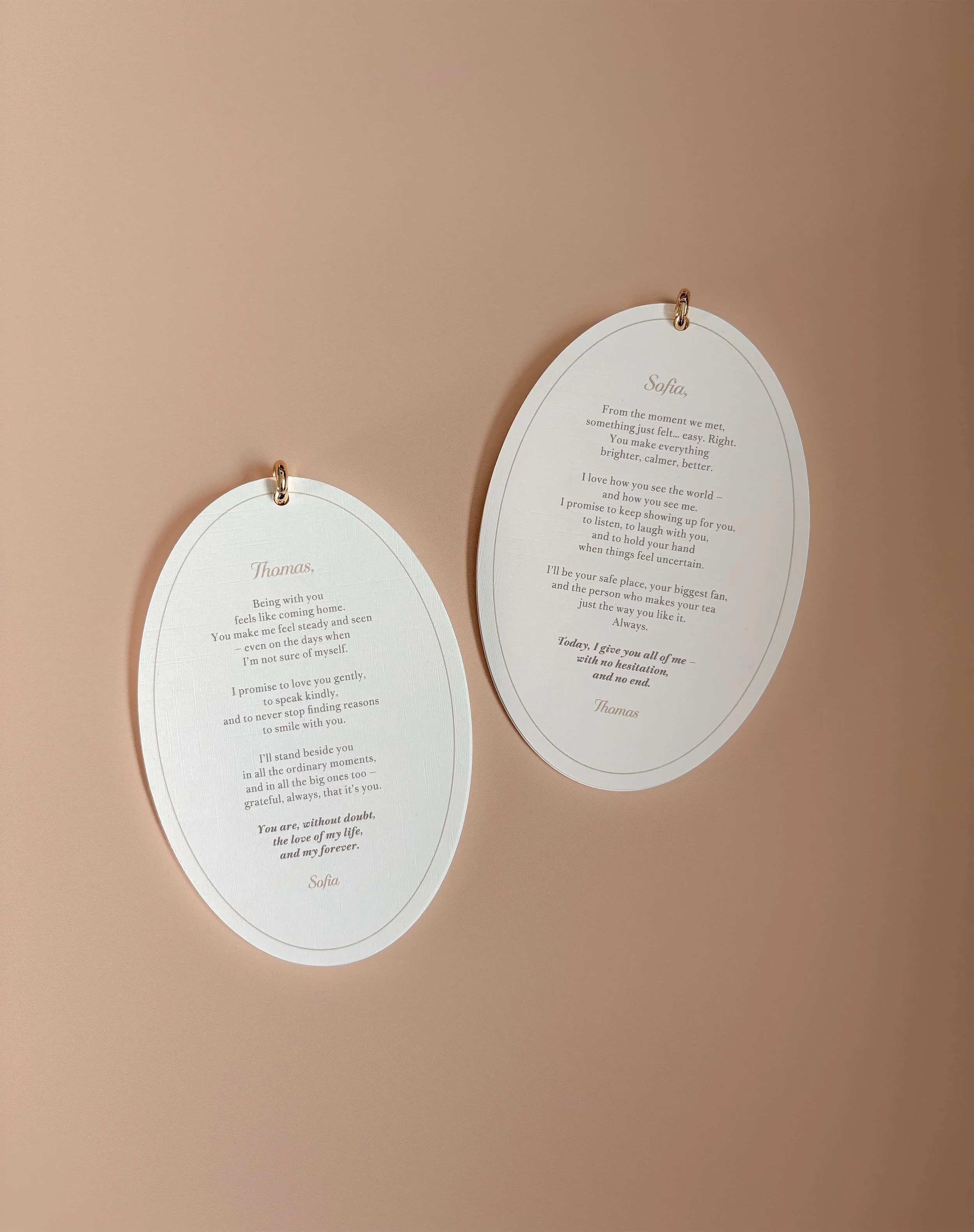 Handwritten or printed?Many couples love the idea of handwriting their vows. It feels beautifully personal and adds a romantic, tactile moment to your ceremony.