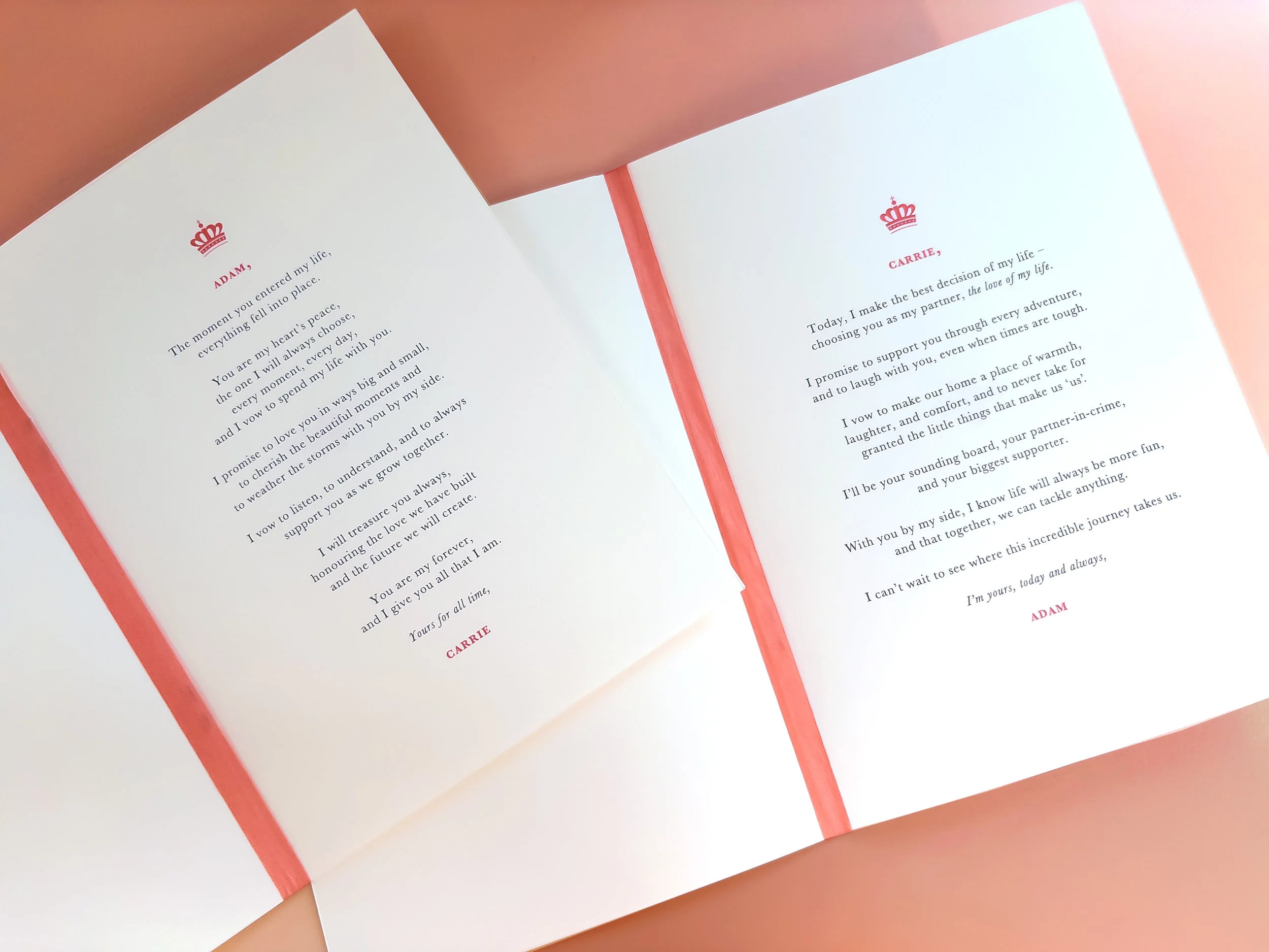 The perfect home for your precious vows, both on the day and as a lasting keepsake of the promises made to one another.