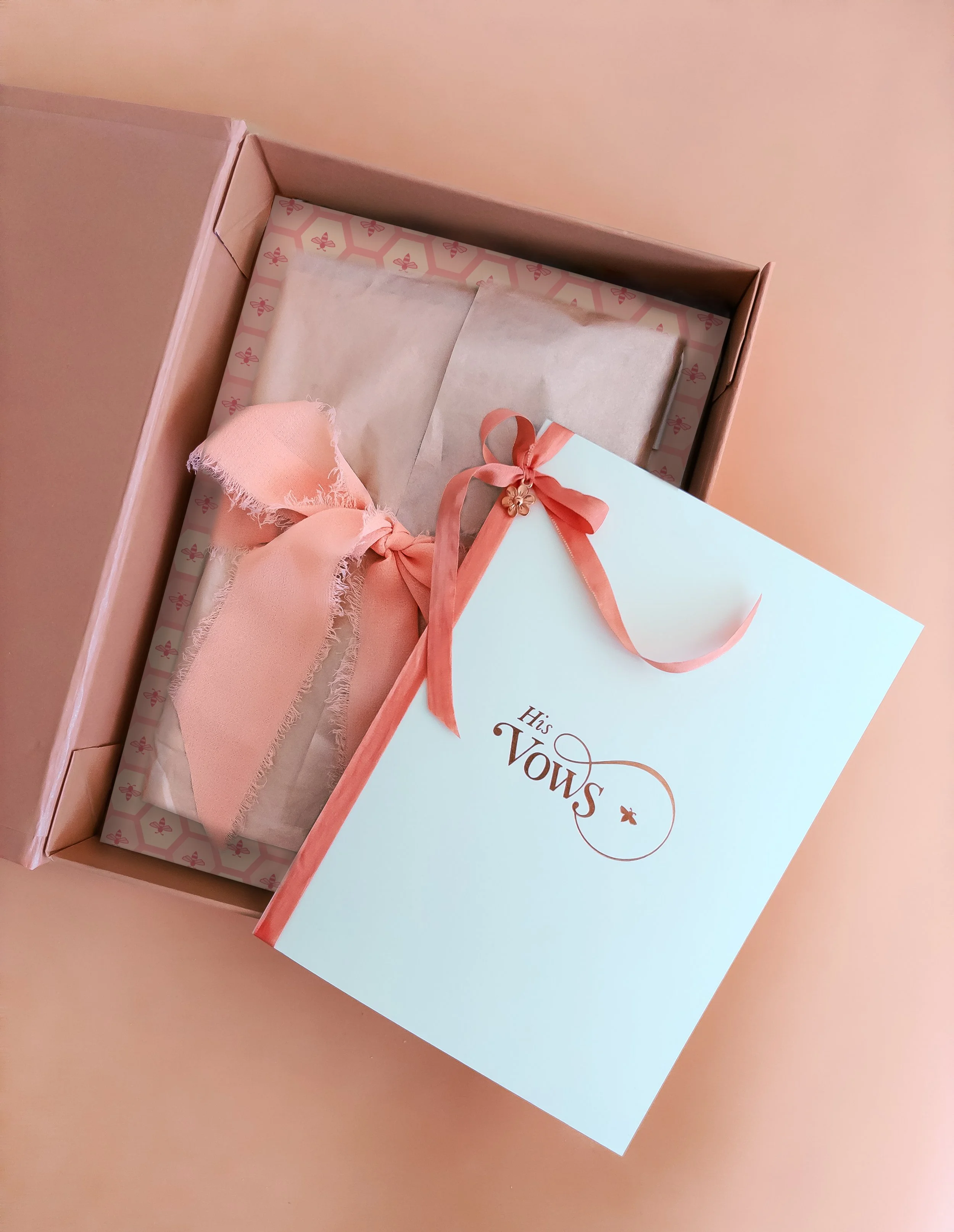 After the wedding, your vow books make the loveliest keepsake. I recommend storing them in their presentation box, kept somewhere safe and dry. Ready to be treasured for years to come.
